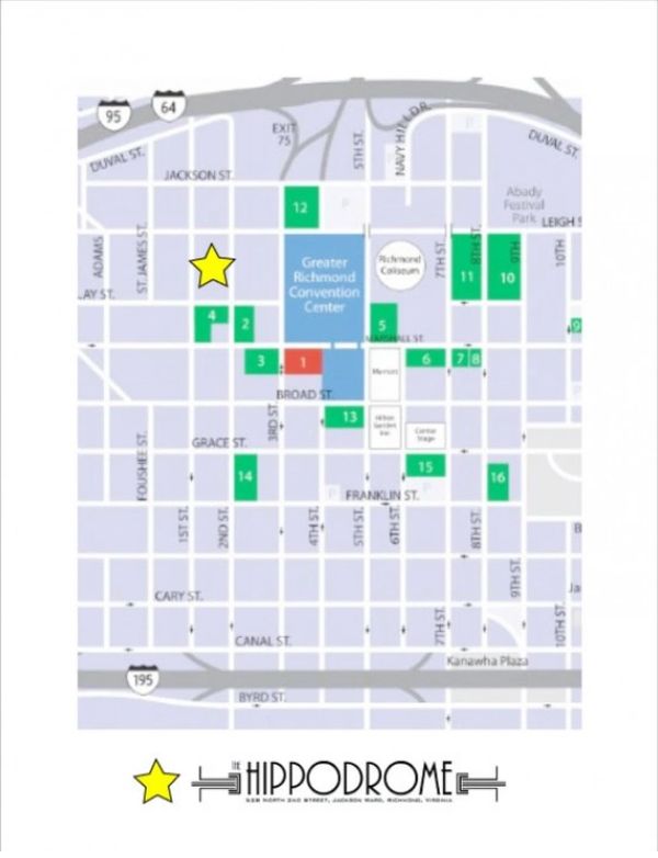 The Hippodrome and The Greater Richmond Convention Center are surrounded by 5,400 parking spaces within a six-block radius. When selecting a parking lot, we encourage you to be familiar with all parking lot rules and responsibilities before making the commitment to park.